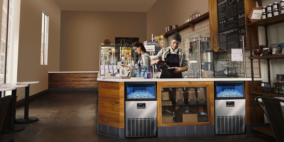 Ice machines use either air or water to cool the refrigeration system. The former is usually more energy efficient, but requires more space and adequate ambient air circulation. Water-cooled ice machines are suitable for rooms with high levels of airborne particles or grease, poor air circulation or limited space; the disadvantage is that they require a large amount of water to operate, which results in higher operating costs.