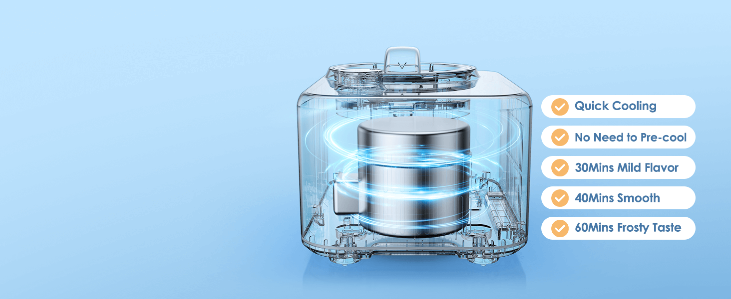 Fully auto compressor, no pre-freezing needed. Enjoy smooth ice cream instantly.