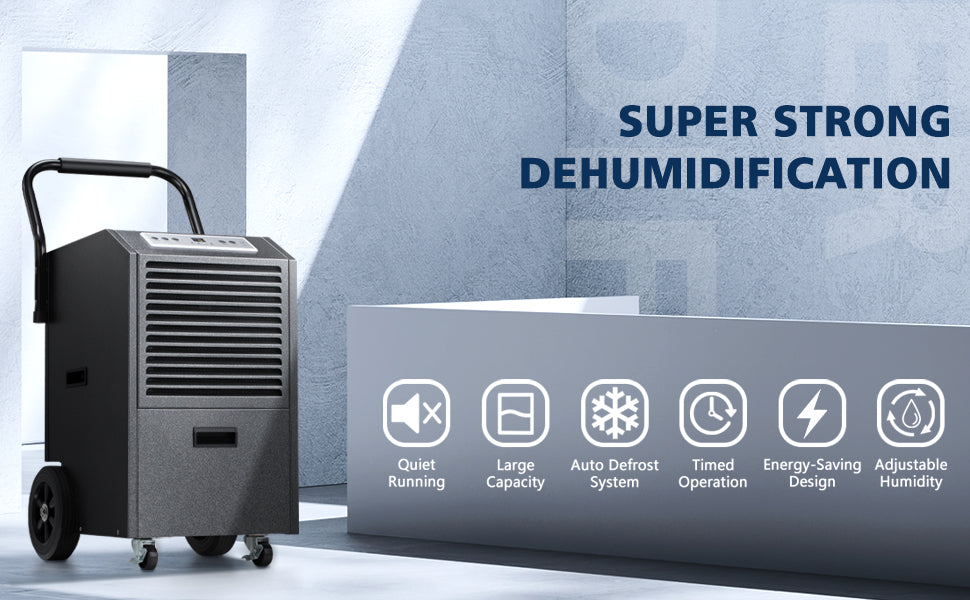 - Upgraded Dehumidification: dehumidifier can remove up to 110 pints per day, which is more efficient than other conventional dehumidifiers that remove 50 pints per day.