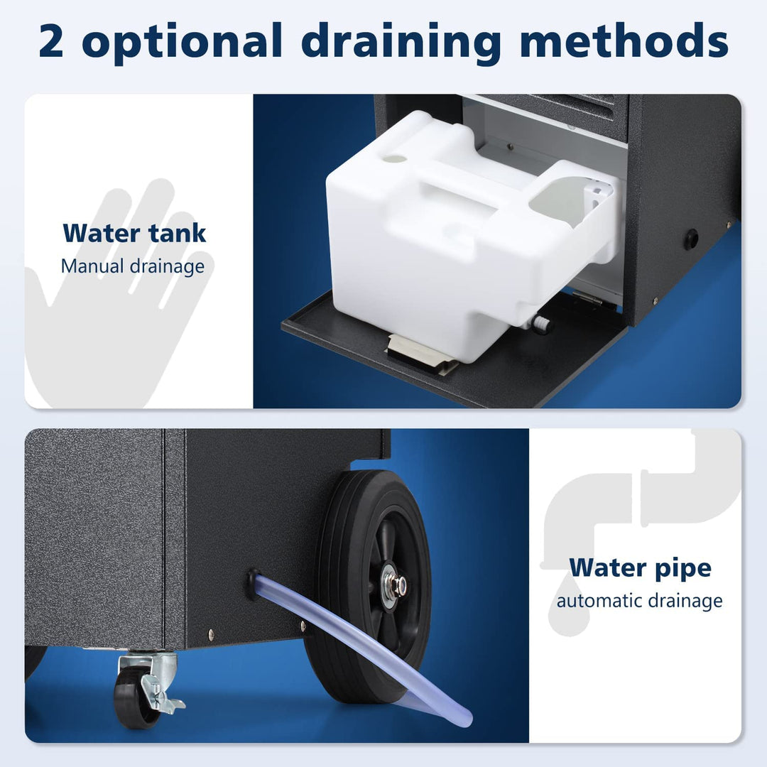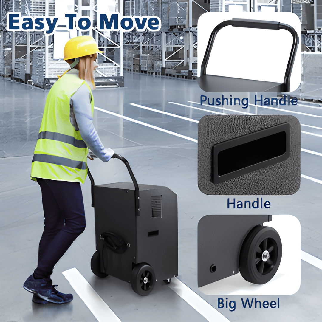 This commercial dehumidifier with a 1.32 gallon water reservoir will AUTO-OFF when the reservoir is full to prevent overflow, while the large water reservoir greatly reduces manual drainage frequency.