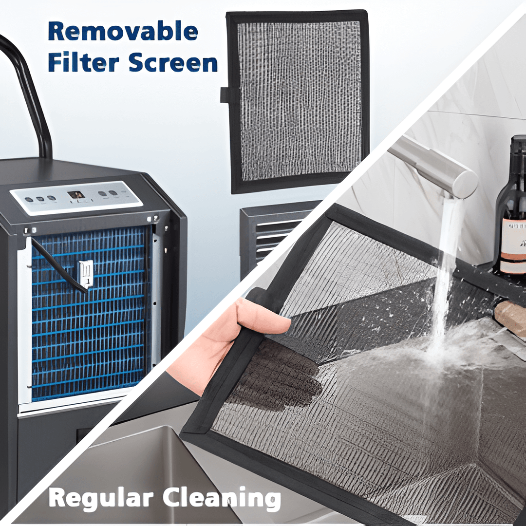 The filter of our portable dehumidifier can be disassembled, you just need to remove the filter mesh from the unit. Then use a vacuum cleaner to suck dust from the filter. And turn the filter over and rinse the air filter under running water.