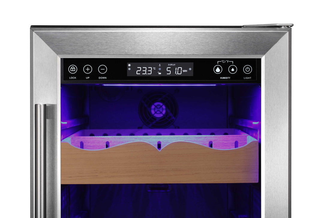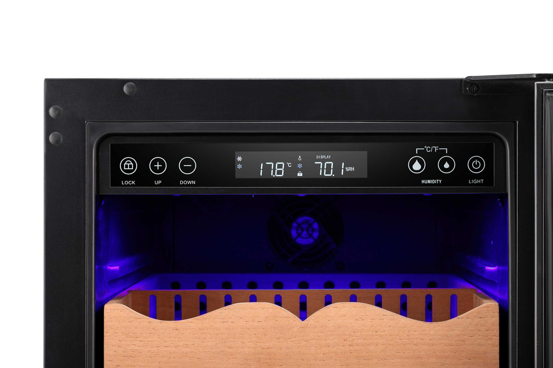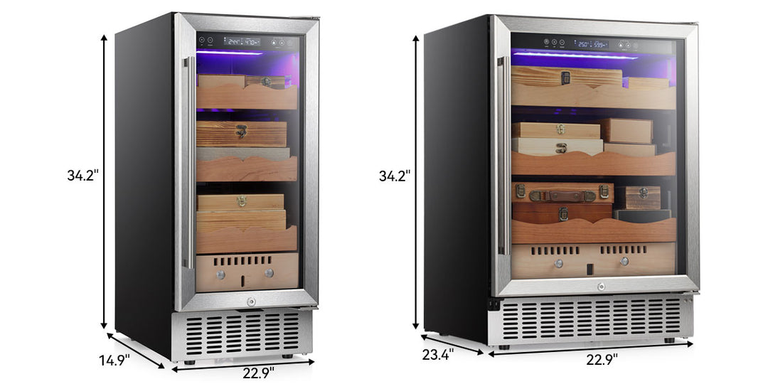 This electronic cooler helps avoid temperature and humidity fluctuations stored in a natural environment and provides a user-adjustable temperature range (61-72℉), Humidity control range 50-80%,suitable for longer storage and better flavor taste.