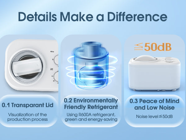 Fully auto compressor, no pre-freezing needed. Enjoy smooth ice cream instantly.