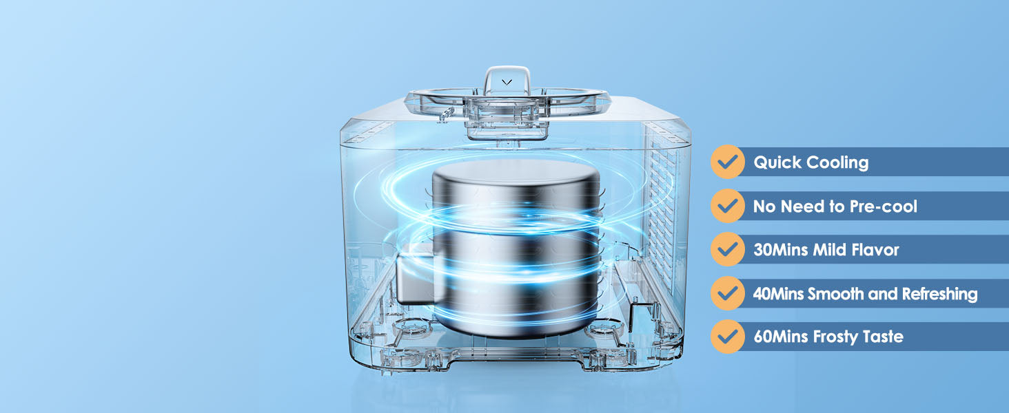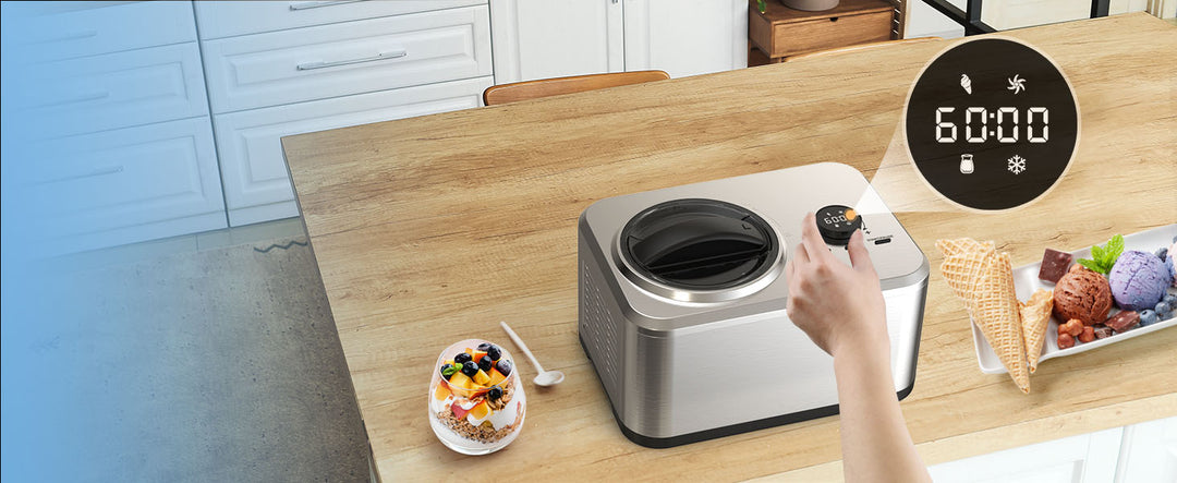 Fully auto compressor, no pre-freezing needed. Enjoy smooth ice cream instantly.