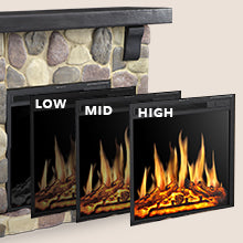 This electric fireplace can be operated with or without heat. Featuring a dual heat setting, the fireplace heater can be set at as high as 1500W and as low as 750W.