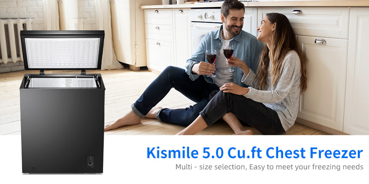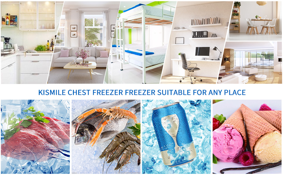 Kismile 5.0 Cu.ft free standing Chest Freezer with Large Capacity, small body and high efficient, Large Capacity is Great using for breast milk, meat, aquatic products, cold drinks, quick-freezing and other purposes, Easy to meet your freezing needs. Compact Freezer is saving space design, Perfect for Home,Dorms,Kitchen and Office. Powerful freezing efficient, keeps you food in fresh anytime.