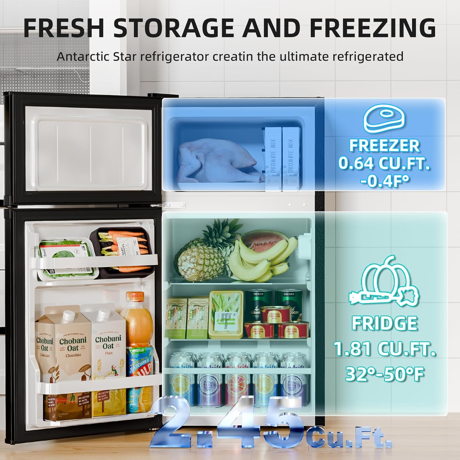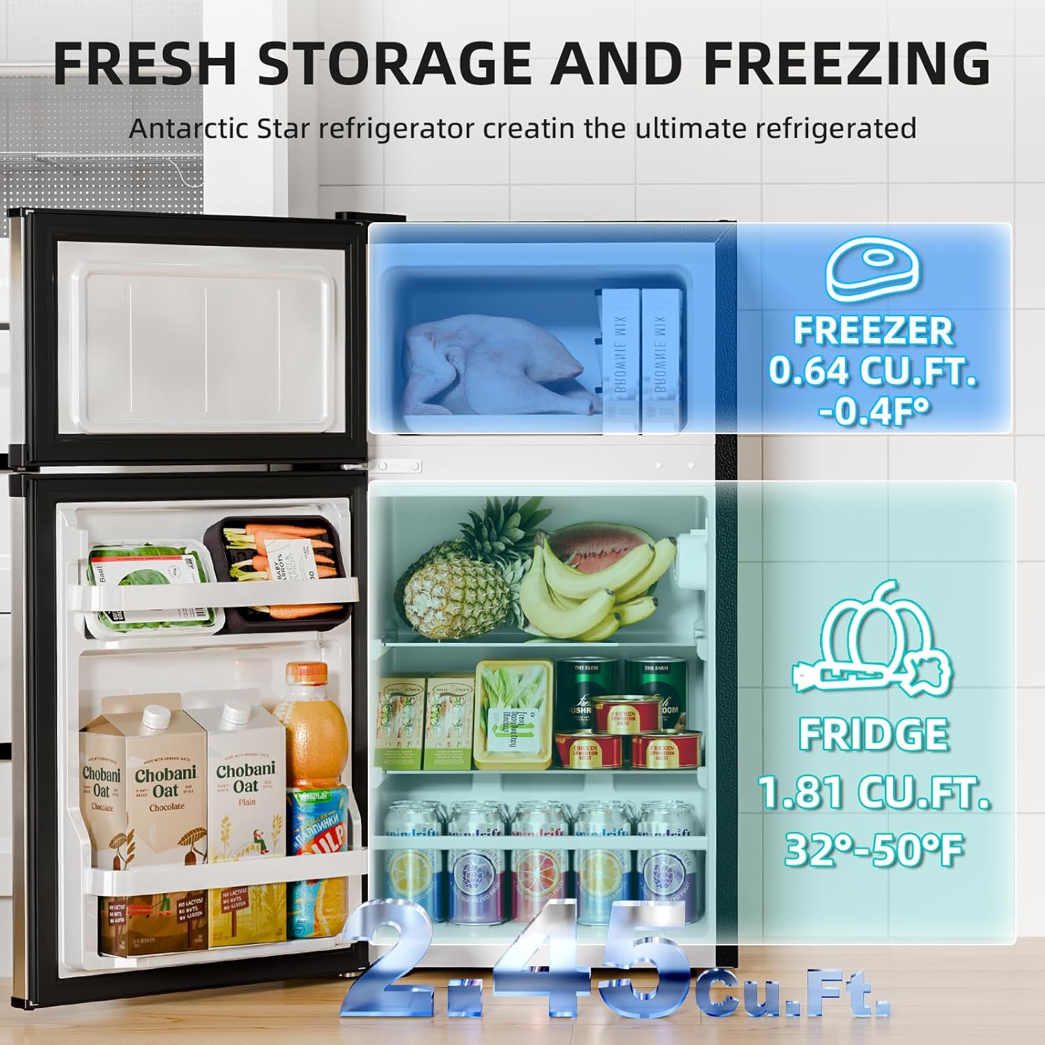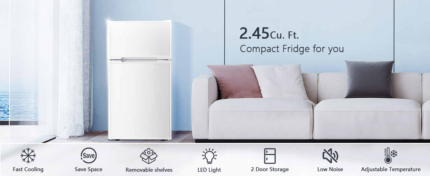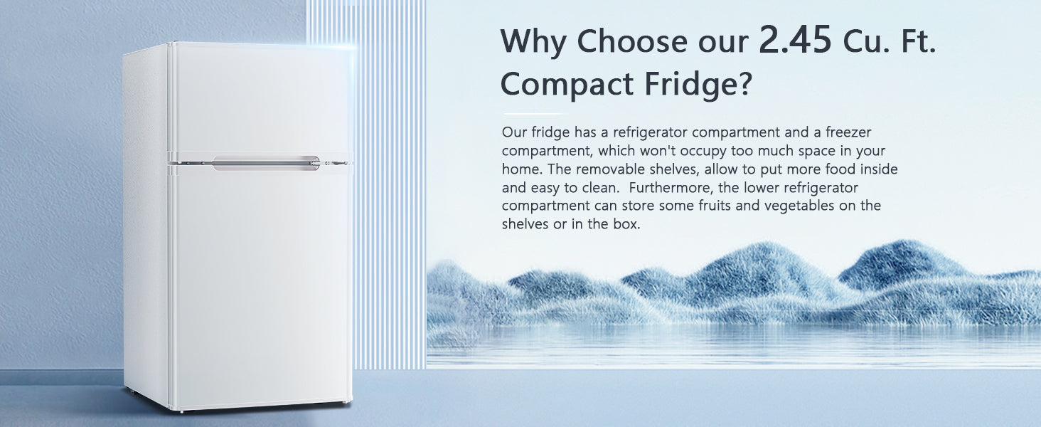 Accessories & Customer Service: This mini fridge with freezer comes with 1 Antarctic Star 2.4 Cu.Ft refrigerator, 2 removable glass shelves, 1 door bin for organized storage, and 1 ice cube tray for convenient ice making. For optimal performance and longer service life, we recommend letting the unit stand upright for at least 4 hours after delivery before plugging it in, allowing the refrigerant to settle. If you have any questions, please feel free to contact us—we are committed to providing excellent customer service.
