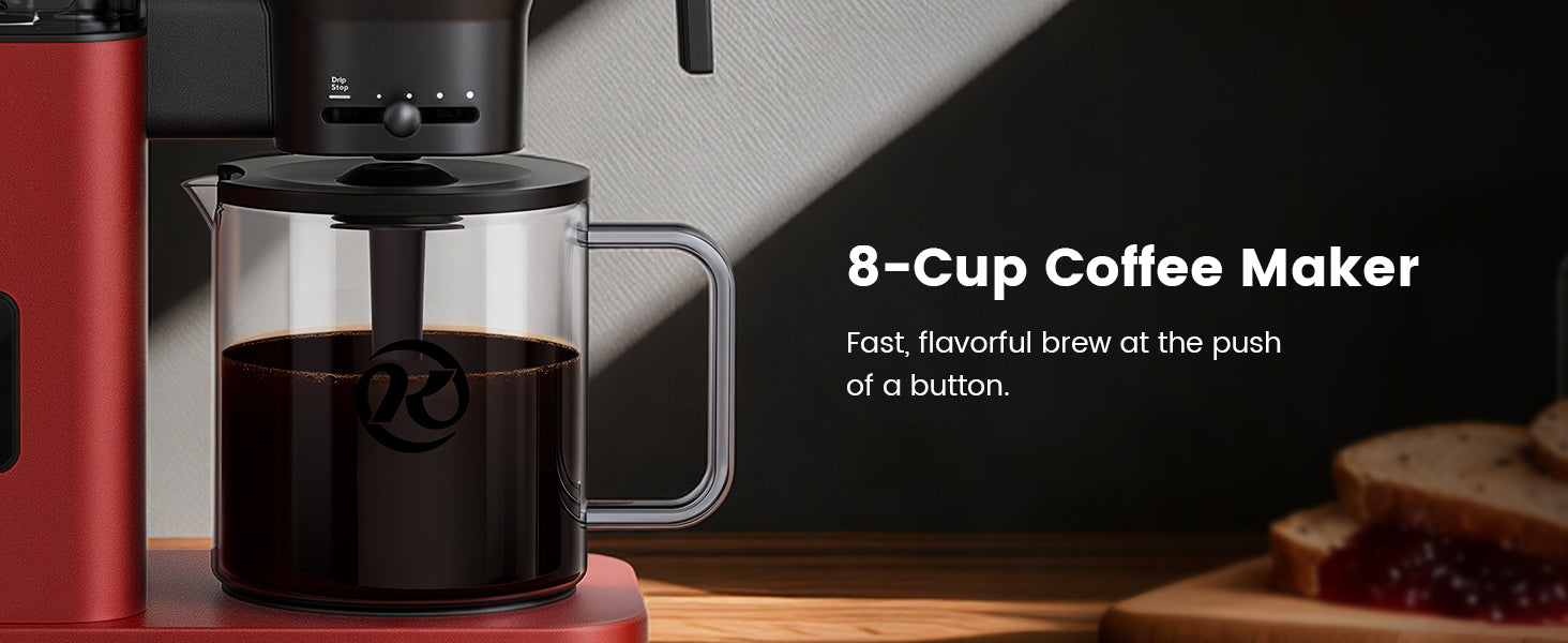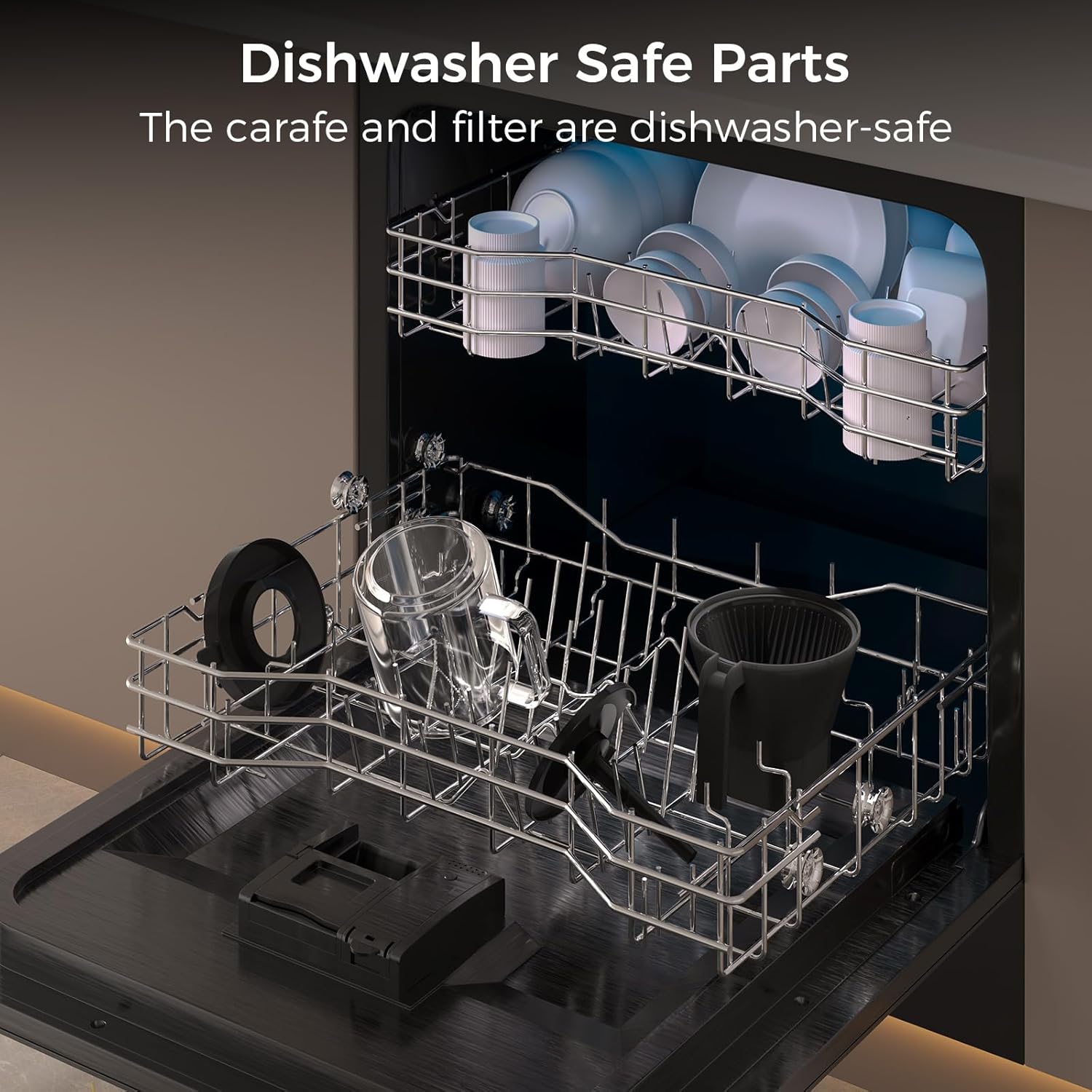 【Removable Tank & Easy Cleaning】Features a 1250ml detachable water tank for up to 8 cups, making it a convenient drip coffee maker 8 cup capacity option. All removable parts—carafe, filter holder, shower head—are dishwasher-safe. Magnetic anti-drip design prevents mess when the carafe is removed