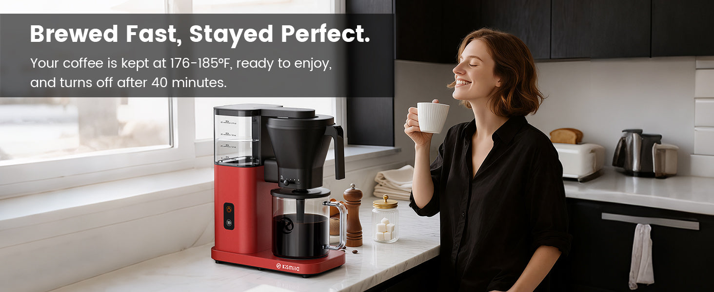 【Fast Heat & Precise Brewing】Start brewing in just 3 seconds with precise 197–205°F control. This programmable coffee maker brews up to 10 cups in only 6 minutes—perfect for busy mornings or weekend brunch. Keep coffee warm at 176–185°F for 40 minutes, making it ideal for daily use in homes or offices