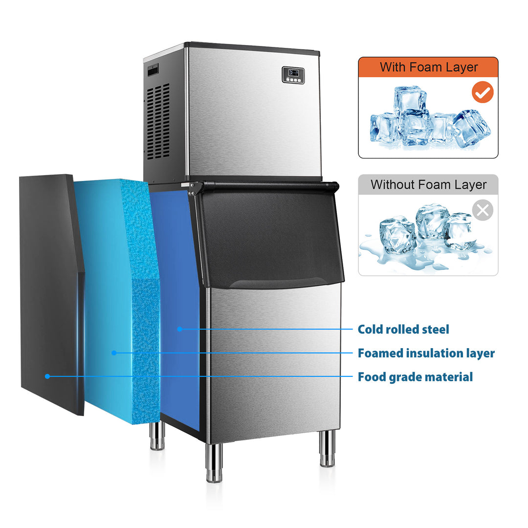 The use of food-grade liner, thickened one-piece foam layer, cold-rolled plate triple protection, effectively keep ice cubes from melting for 3-5 hours after power failure. Tip: To keep the ice cubes from melting for a long time, please store them in the refrigerator or freezer.