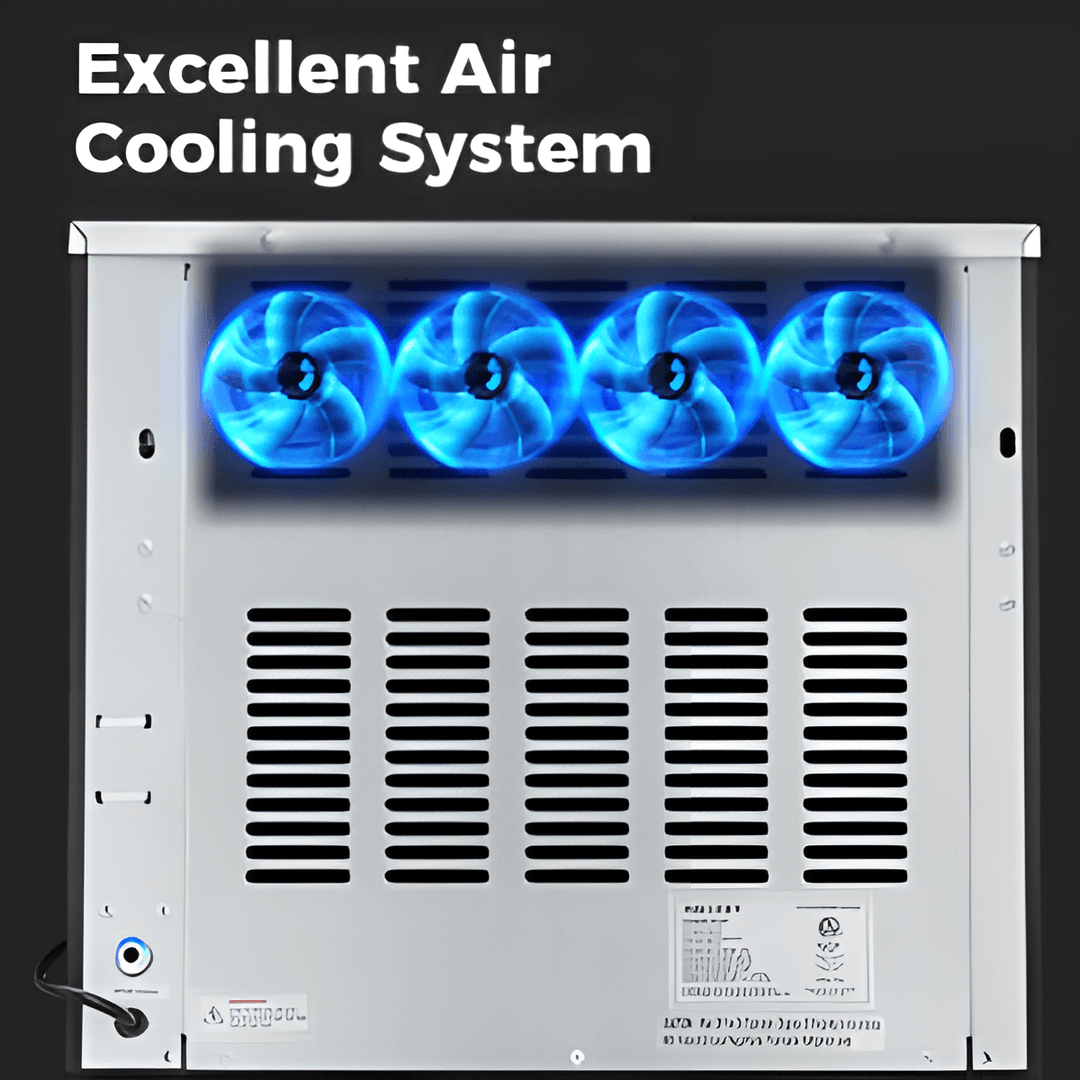 Using air to transfer heat out of the machine. Internal fans and vents inside the machine circulate the air. When air flows through the condenser coils, it removes the internal heat, which is then let out through vents in the rear or sides of the ice machine.