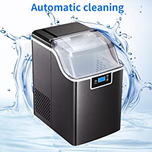 The countertop ice maker equipped with the self-cleaning fuction. You only need to add water to the tank and long-press the ICE/CLEAN button for 5s to start auto-clean.