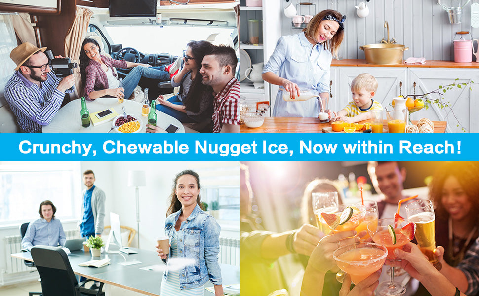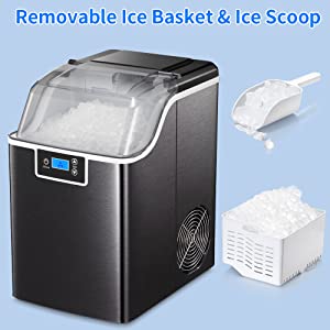 The ice maker countertop comes with an ice basket and ice scoop for easy ice storage. Ideal choice for Kitchen/Living room/Bedroom/Office/Party. Enjoy the cold and cool ice cubes anytime.