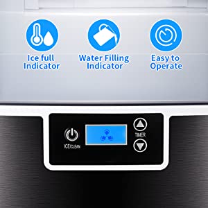 Just fill the ice maker with water and plug it in, when the water is insufficient or the ice basket is full, the reminder will appear on the control panel.