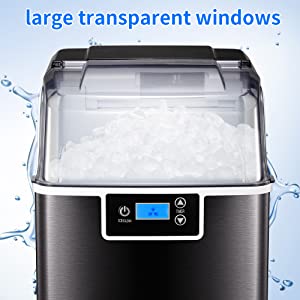 Large transparent window allows you to clearly see the process inside the ice machine without opening the lid.