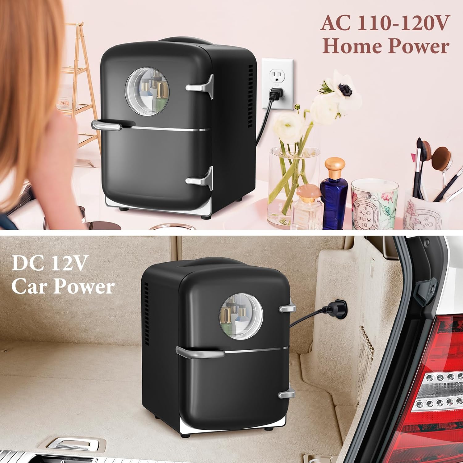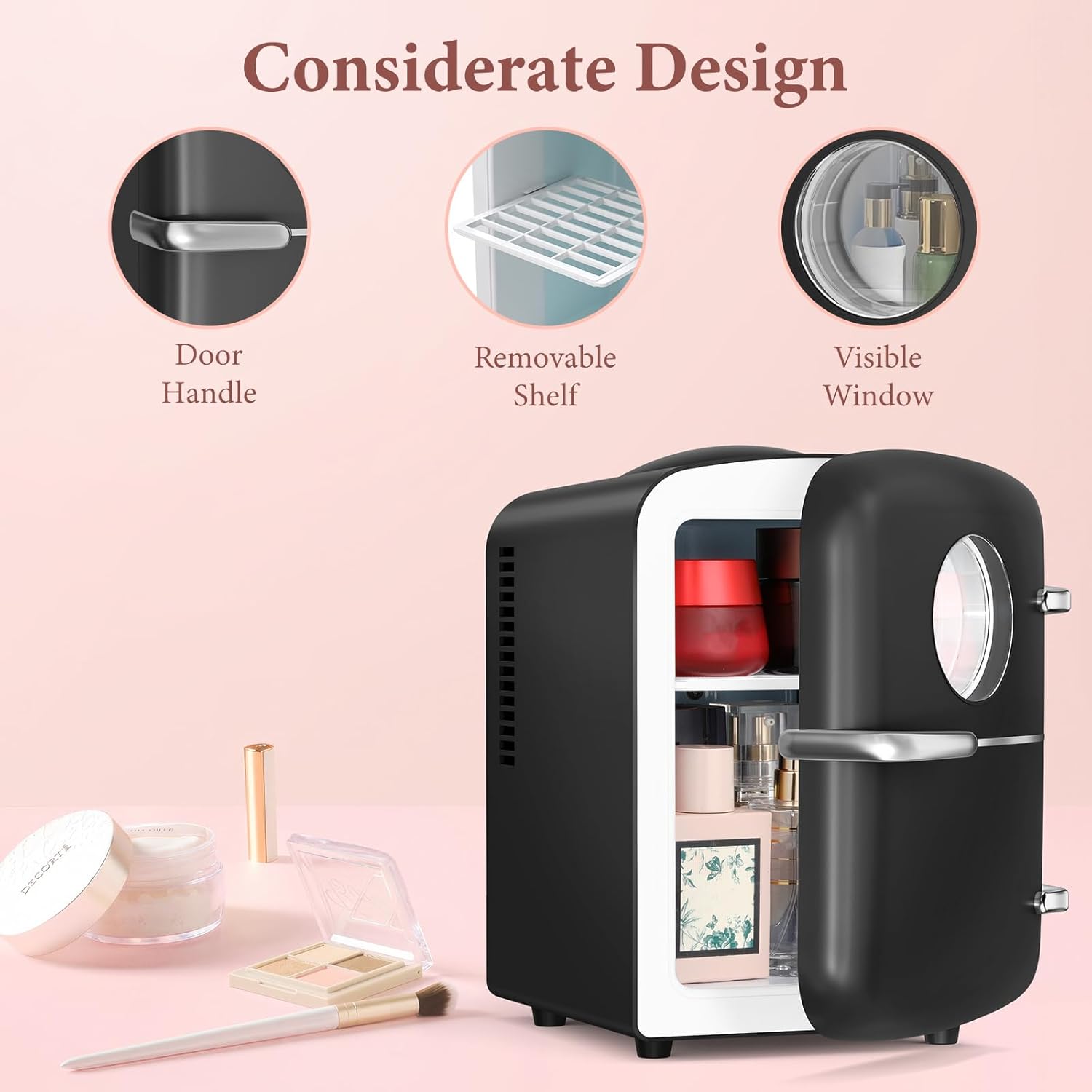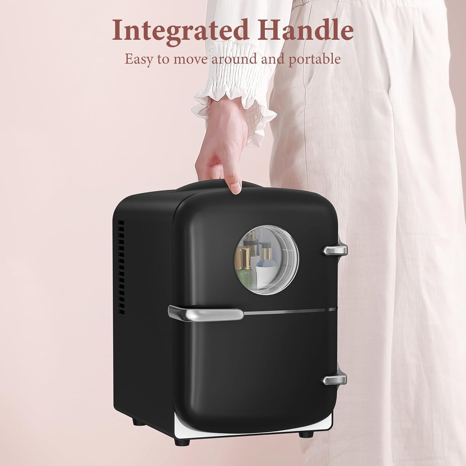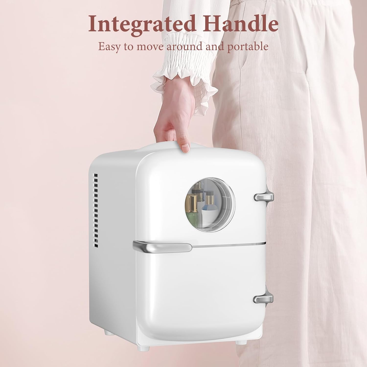 【Dual-Temperature Control】This mini fridge supports independent cooling and warming modes. The interior temperature can drop to 32℉ below the ambient temperature in cooling mode, ideal for preserving skincare products and beverages. In warming mode, it can maintain a constant 132℉, perfect for heating milk, warming facial masks, or keeping snacks warm—meeting all your daily storage needs in one compact unit.