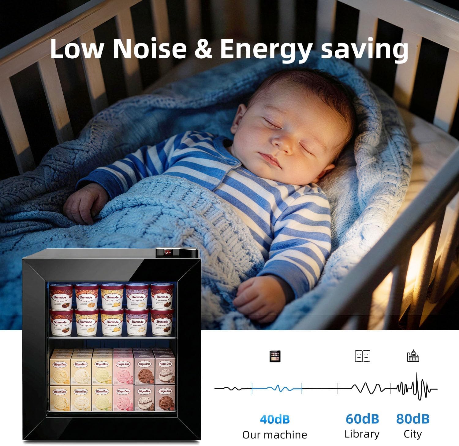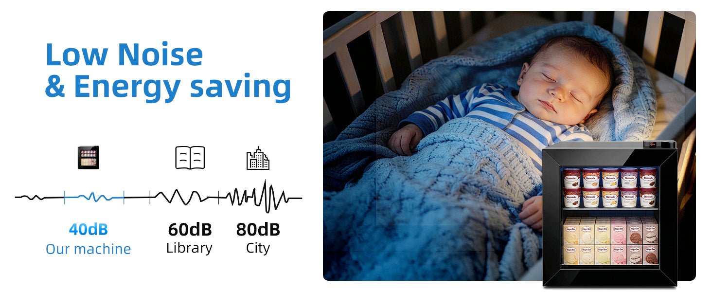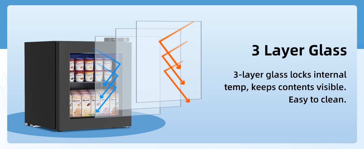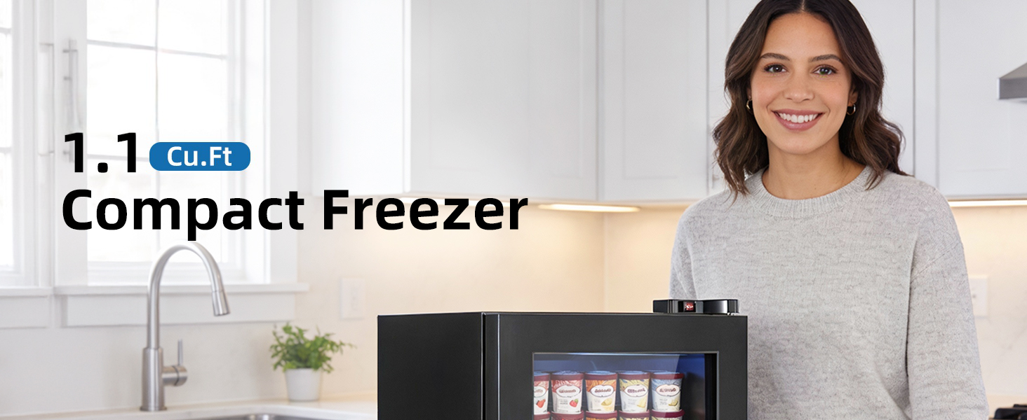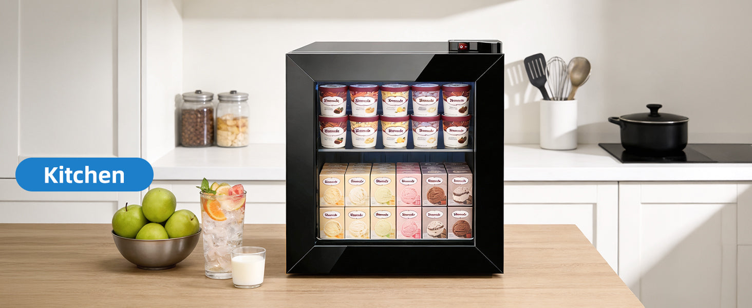 With a 1.1 cu ft capacity, it can hold multiple ice cream pints or cups at the same time, suitable for daily use or small-scale display.