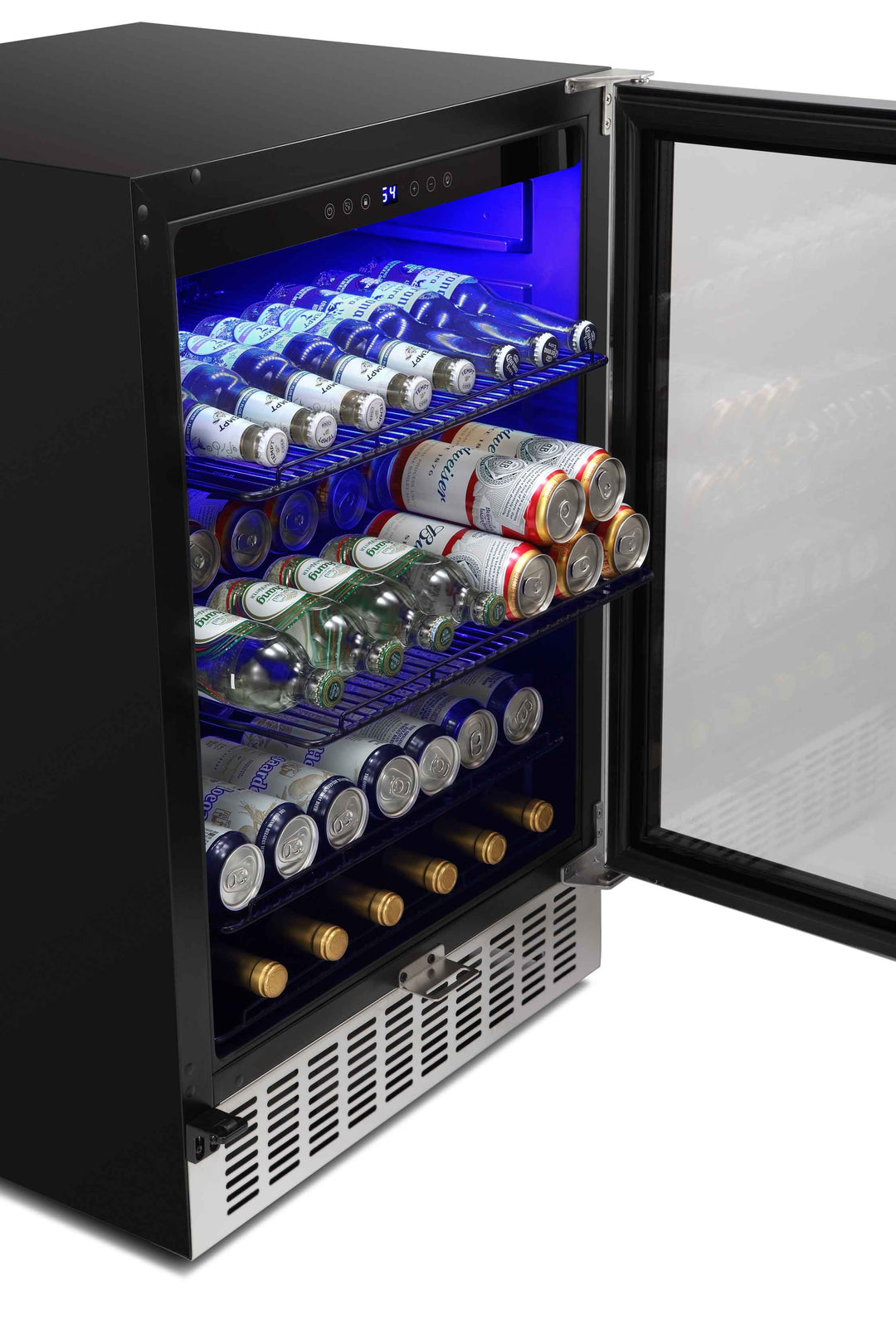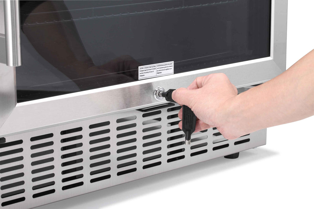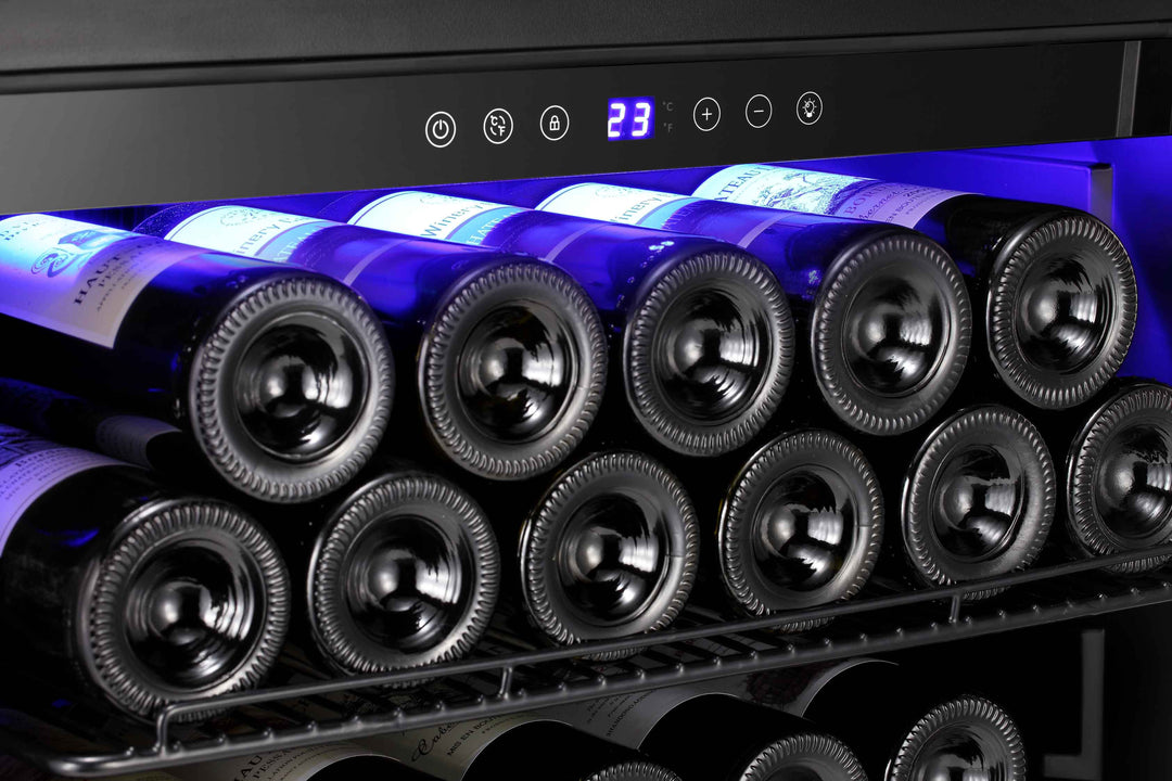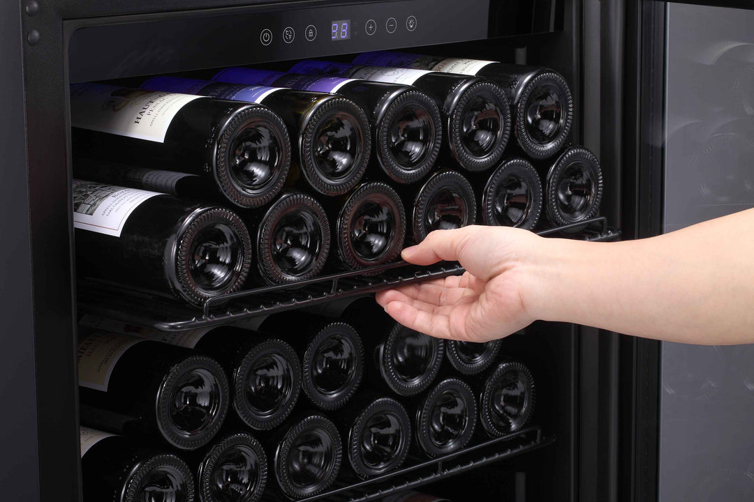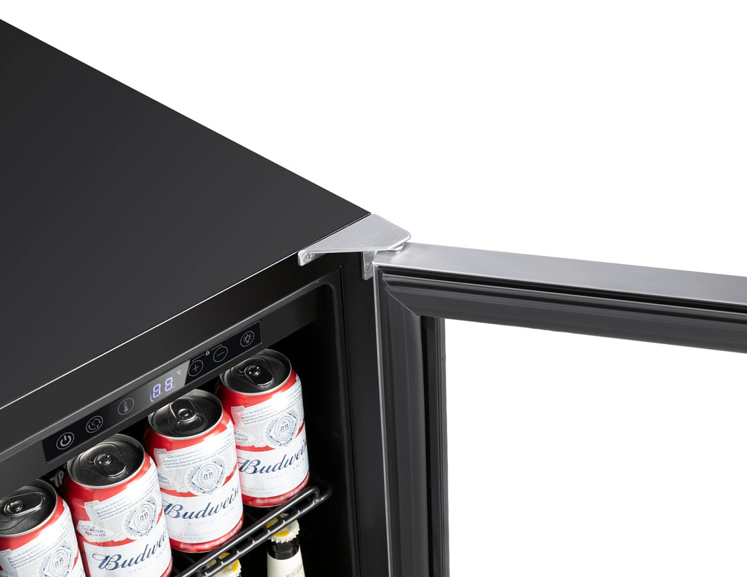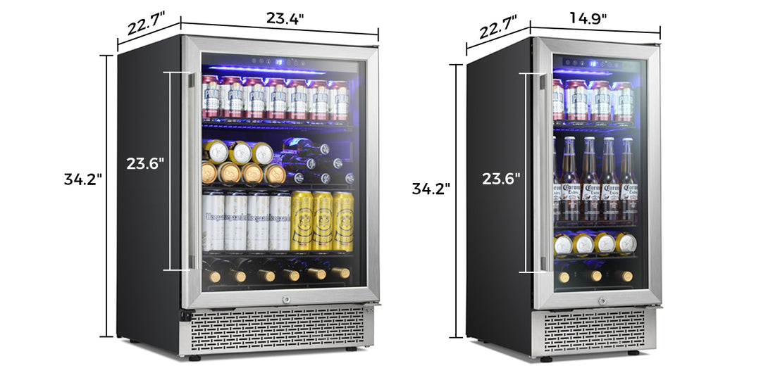 For 24 inch, it can holds up to 46 wine bottles (750ml) or 149 Cans (12oz) for maximum storage.