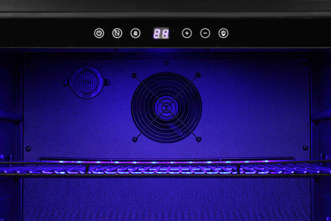 The soft blue LED light is convenient for taking wine at night, and the wine cabinet will automatically turn off the lighting system without any operation.