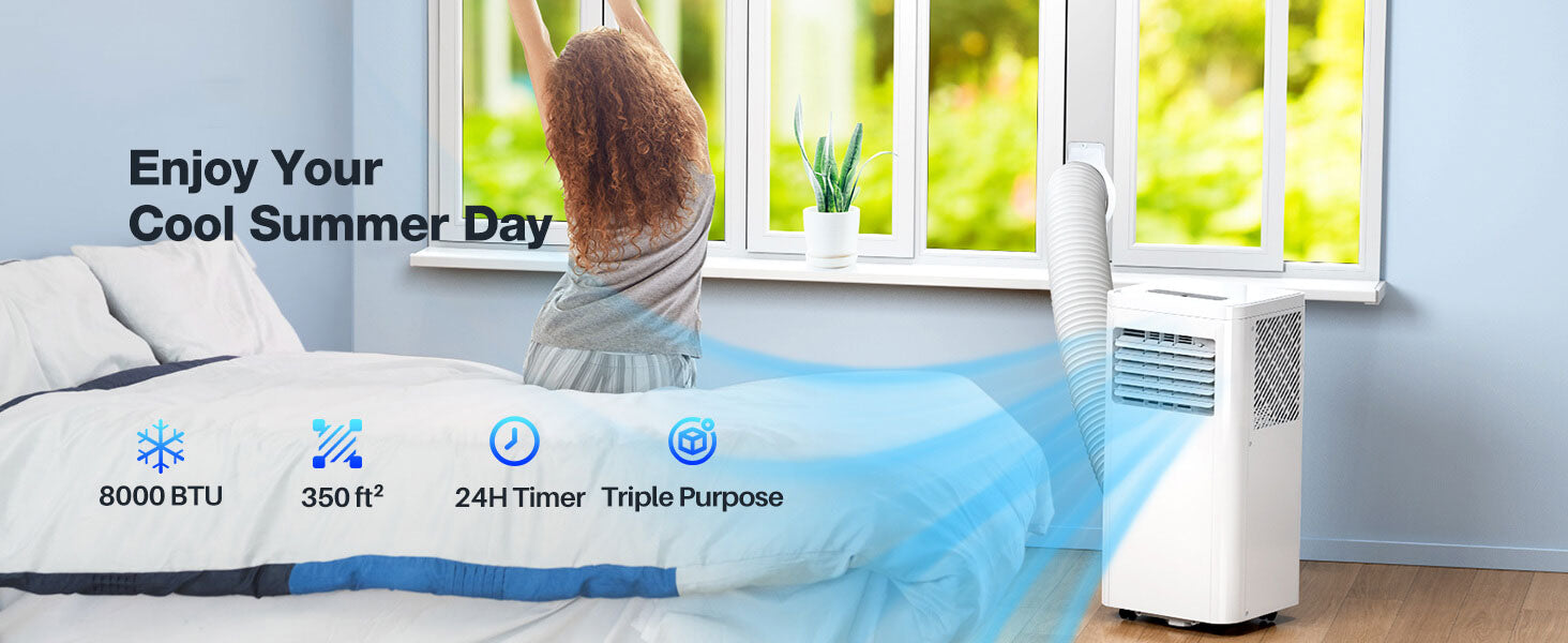 Preset the 24-hour on/off timer to turn on/off the portable ac unit according to your schedule. Keep the room cool and save energy at the same time.