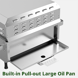 Conveniently slides out to collect excess grease, this pan simplifies cleanup and prevents messy spills. Its generous size accommodates ample drippings, while the stainless steel material withstands heat and corrosion for long-term use